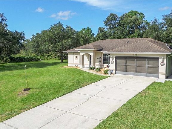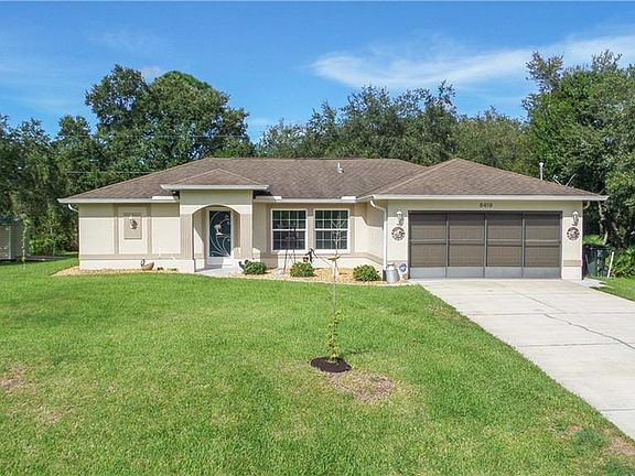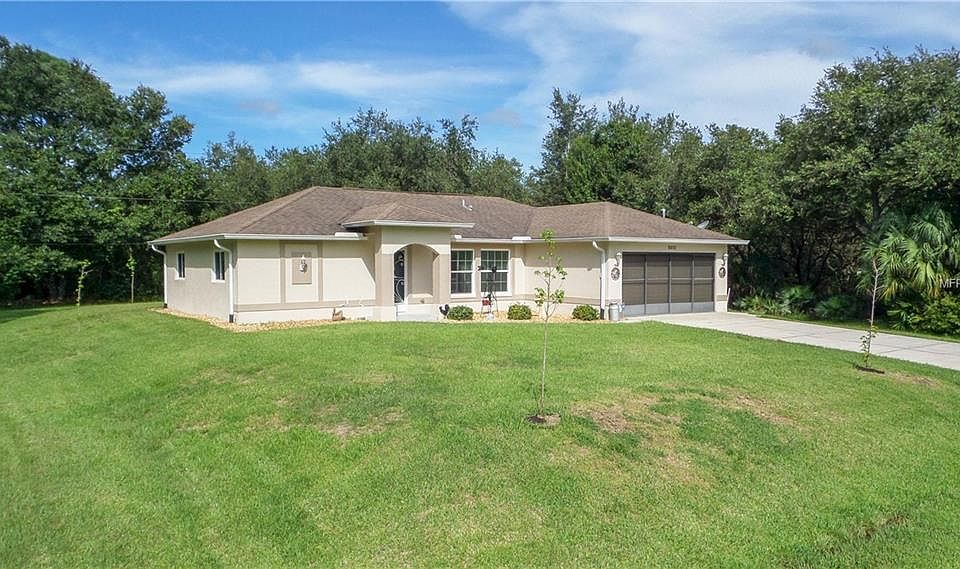 Please view the 3D interactive tour!!! If you are looking for a North Port home with outdoor space this home is for you! This 3 bedroom 2 bath home on almost 1/2 acre with impact resistant windows has so much to offer. Open floor plan with over 1300 sq/ft of living space freshly painted inside and out. The living room is large at 17X12 and has room for large furniture. The dining area can accommodate a large table and has sliders with built in blinds that lead to the lanai...perfect for entertaining. The kitchen is bright and features beautiful granite counters and back-splash plus a pantry and ceramic tile floor. The master bedroom offers plenty of room for large furniture with walk in closet and master bath with granite counter. Guest bath also has newer granite counter. Bedrooms 2 and 3 are both 11X10 and are bright and airy. Inside laundry room with newer washer and dryer. Garage has a freshly painted floor and has a mini split AC unit installed in 2016 to keep you cool while you are working! Large 20X10 covered/screened lanai plus a large concrete pad with a covered canopy for grilling and sidewalk to side garage door. Seller had a french drains installed around the property to keep the area dry plus whole house gutters and irrigation system. Adjoining lot has been cleared and offers green space for the whole family (properties are deeded together). Shed is less than 6 months old and pre-wired for electric and a has a ramp for riding mower.