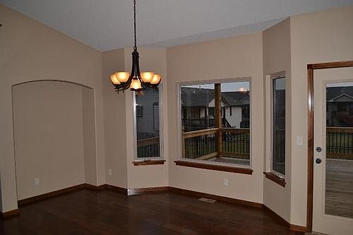 Fabulous new open floor plan! Quality Roger Oswald Construction! Split bedroom plan with a private foyer incuding a Colonist door with sidelight, tile floor and open rail stairway! Large open living room with a high vaulted ceiling starting a 9', plant shelves and large picture windows! Large kitchen with solid wood staggered cabinetry, Granite countertops, huge island with eating bar, huge walk-in Pantry, undercounter lighting, rough-in for over cabinet lighting, vault & wood floor! Huge dining area with large picture windows in a bay, hutch inset patio doors to deck, vault and wood floor! Super master suite with sharp tray ceiling with crown and lighting, large picture windows and ceiling fan! Incredible master bath with corner Jacuzzi with window above, 4' separate shower, raised double vanities, linen and his and her walk-in closet with sweater rack and access to laundry room! The two extra bedrooms are really large with ceiling fan rough-ins, phone and cable outlets and wood 3-way closet shelving! Large hall bath with 4' vanity and vinyl floor! Super m/f laundry with cabinetry and hanging rod, vinyl floor and coat closet! Fantastic viewout unfinished basement with future finish for a huge family room with large picture window plus additional window, corner fireplace rough-in and wet bar rough-in! Also available for finish is a 4th bedroom with a viewout, 5th bedroom with a daylight and a full bath! Covered Cedar deck! Oversize Car garage! QUALITY FEATURES: WOOD FLOOR IN KITHEN & DINING*MAPLE TRIM*SOLID WOOD CABINETRY WITH WOOD ENDS*UNDERCOUNTER KITCHEN LIGHTING + ROUGH-IN FOR OVER CABINET LIGHTS*WASHABLE INTERIOR PAINT*2ND DOORBELL IN BSMT*CEILING FAN ROUGH-IN IN EVERY BEDROOM*4-CATEGORY FIVE PHONE LINES IN HOME THAT ARE NETWORKED + 4 CABLE TV OUTLETS*ALL VINYL CASEMENT WINDOWS W/LOW E (INCLUDING VIEWOUT AND DAYLIGHT)*CONCRETE SIDING WITH PROTRIM*CEDAR COVERED DECK*VINYL FLOORS IN ALL BATHS*EXTRA DEEP 3 CAR GARAGE!