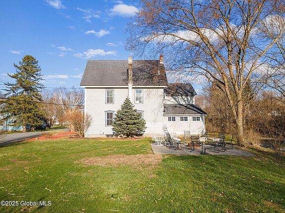 Stunning Victorian home featuring 4 spacious bedrooms, 2 full baths, a charming country kitchen, and an elegant formal dining room. A grand staircase adds timeless beauty to the interior. Outside, enjoy a beautifully landscaped yard with a patio overlooking Cobleskill Creek, perfect for relaxing or entertaining. This home blends classic charm with serene surroundings. Welcome home... a true must-see! Property also includes a30x30 2-car garage plus additional 20x50 shop with a half bath and a high ceiling for a car lift. Heated and separate 200 amp service and well. Car lift excluded.