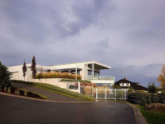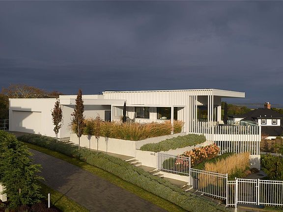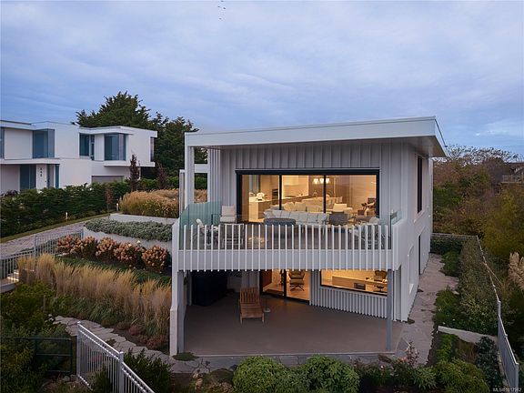 Completed in 2022, this architectural masterpiece in South Oak Bay offers over 3,200 sq. ft. of refined modern living with breathtaking ocean views. Designed to complement its natural surroundings, the home showcases soaring ceilings, walls of glass, and seamless indoor-outdoor flow to multiple terraces. The main level features open-concept living and dining anchored by a sleek linear fireplace, a chef’s kitchen with waterfall island, and a tranquil primary suite with spa-inspired ensuite. The lower level continues the thoughtful design with two additional bedrooms, a gym, office, and walkout access to the landscaped garden patio. Radiant in-floor heating, an EV-ready garage, and low-maintenance landscaping complete this exceptional contemporary residence. All steps from the oceanfront, Victoria Golf Club, and the charming village of Oak Bay.