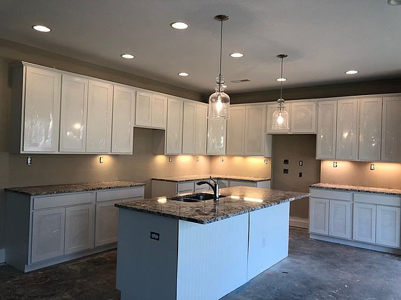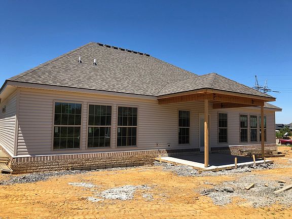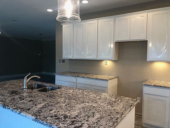 This split bedroom ranch plan offers three bedrooms,2 bathrooms and a three car garage. The main living areas of the home, including a formal dining room, are open to one another. The kitchen has white cabinets, upgraded granite, large pantry, spacious breakfast area, and a large island with lots of works space and counter seating. The oversized master bedroom has a trey ceiling and a triple window overlooking the rear yard. The master bath has an extra large walk in tiled, 2 linen closets, and spacious vanity with two bowls. A large walk-in closet completes the master suite. A large utility room with folding counter and drop zone option functions as a mudroom. In addition there are 2 floor outlets in the family room. A covered patio overlooks the level corner lot!