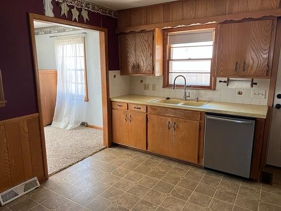 Tidy ranch on double city lot. 2 bdrm. Washer and dryer stay. No value. Detached garage. Detached shop 30X40 with walkin door, concrete floors, air compressor that stays, heated and insulated. Great location for home based business!! Taxes are estimated.
