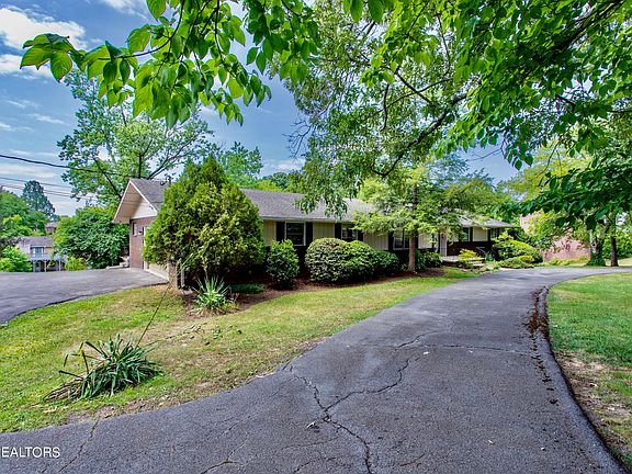 One-owner basement ranch home situated on a lovely large 1.15+/- acre lot with a gently sloping backyard in the highly sought after West Hills community of West Knoxville! Turn into the circle front drive and enter the home through the double front doors into the slate entrance foyer, open to the expansive dining room and large living areas. This 6 bedroom, 3 bathroom home features a large eat-in kitchen with eat-in breakfast area, breakfast bar, pantry, and built-in desk & bookcase. Oversized laundry/utility convenient to the kitchen. Comfortable den adjoining the kitchen with fireplace. Large master bedroom with walk-in closet, additional closet and en-suite bathroom with a 7′ vanity and tub/shower. (2) sizeable guest bedrooms on the main level with guest bathroom. Multiple closets on the main level. Huge basement rec room with paneled walls, fireplace and bar, plus (3) additional bedrooms and bathroom in basement. Oversized storage/mechanical room. Large upper and lower concrete patios. Side entry 2-car attached garage. Awesome buying opportunity to make this West Hills home your own!