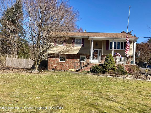 Don't miss the opportunity to own this spacious Bi-level home with great mother/daughter potential. This home is situated on a private, partially wooded 3acre lot that backs up to the Manasquan River. The main floor freatures 3 bedrooms, 1 full bath, updated kitchen and dining/living room combo with hardwood floors. The lower level is fully equiped with a large room that can be utilized as a bedroom or additional living space complete with a woodburning fireplace, full bathroom, flex room or dry kitchen and an office with a private entrance. The extensive yard boasts an oversized detached 2 car garage complete with a tool room and loft and 220Amp. Lots of possibilities for this amazing property.