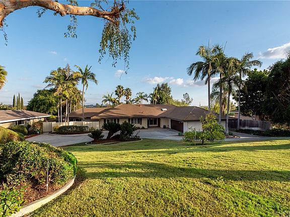 Perfection Defined! A single level Beauty located in Fullerton's Sunny Hills Estates.A semi-circular driveway ushers you into your sprawling,almost half an acre estate.Walk into double entry doors & the cozy living room draws you to backyard views anchored by a saltwater pool & spa.The Great room is fitted w/ a fireplace, the expansive Kitchen & a spacious inside laundry is screened from direct sight from the foyer. The formal dining room sits apart from the living room but not closed off. Slightly to the left, a wall separates all bedrooms, with the Master's peeking at the end of the hallway & 3 bedrooms & a full bath lie side by side.Beautiful finishes all throughout, starting w/ elegant drapes & fabric shades on double pane Andersen windows.Solid maple wood cabinetry in harmony w/ granite counters nicely contrasts w/ stainless steel built in Refrigerator & black monochrome double ovens.All bathrooms are exquisitely remodeled utilizing marble,decorative tile, glass blocks & fine bath fixtures.A sturdy flooring combination of ceramic tiles & wood, softened w/ carpet in some areas.A wealth of cabinetry for home organization & displaying rare finds.The Ceiling features well placed skylights, recessed lighting,fan & light fixtures.A French sliding door by Andersen extends living room to an outdoor bliss lined w/ brick pavers, punctuated by an outdoor barbecue against mature palm trees.Outdoor activities include fishing & hiking. This home attends the best of Fullerton schools.