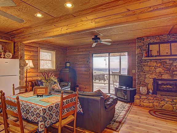 This is North GA Mountain Living ! Enjoy Breathtaking Long Range Layered Mountain Views from both inside the Home and on the Large Covered Porch. 3.13 Acres in a Private Setting with level driveway and outdoor space. Usable Land with a Fire-pit and Picnic Area! 2 Bedrooms, All Wood Interior, Stunning River Rock Stacked Stone Fireplace, Wood Floors, Master and Laundry on Main. Plenty of Parking and an Observation Deck to Soak in More Views and enjoy nature. USFS is just steps away. Will Not Last !
