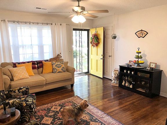 Newly updated cozy home on a quiet city street behind the park. Mature trees, serene covered deck off the kitchen overlooking the large backyard with new garden shed. Newly planted fruit trees and shrubbery--a blank canvas for a dream landscaping project and a perfect vegetable garden location near the shed! City checkens are allowed as well! Large covered carport in front and new wood fencing dividing front and back yard. Interior updates include new paint throughout, new carpet in den, new central heat/air, new waterproof vinyl plank flooring in kitchen; new vinyl tile pattern floors in bathrooms and laundry room, new refrigerator/oven/stovetop in kitchen, brand new lighting fixtures and ceiling fans throughout, new vanity & shower surround in master bath, refinished original hardwood floors in living room, hallway & bedrooms.
