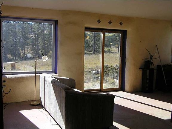 Nearly 40 acres with Pikes Peak view, trees and meadow. Borders ranch in conservation easement. Self sufficient features and off the grid alternative construction include small cabin for living, 800 square foot studio, and 420 square foot workshop/storage. Hay shed with fenced corral for horses, domestic well and cistern and solar system. Owner financing available.