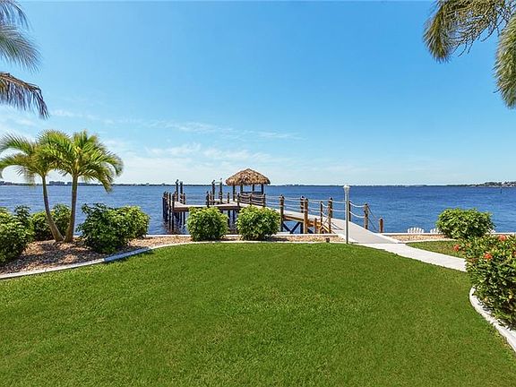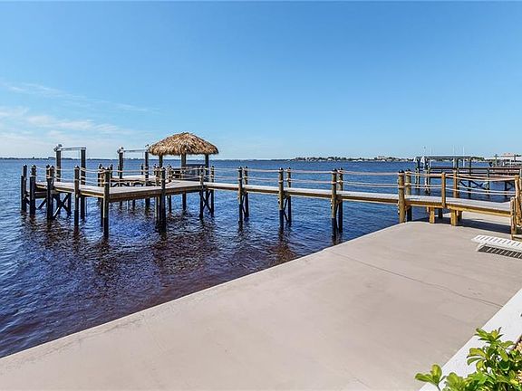 Riverfront, direct sailboat Gulf access, south facing, oversized lot: 12,900 sq. ft., approx. 155 - 165 ft. deep (for exact numbers see survey), 2016 NEW composite boat dock and boat lift. --- 2018 NEW roof, 3,038 sq.ft. living area under a/c, 3 bedrooms, 3 bathrooms plus pool bath; large and very bright great room, additional room / office; originally built 1967, later remodeled. Property has fantastic potential and many options for changes. Heated pool. Fully furnished, turnkey.