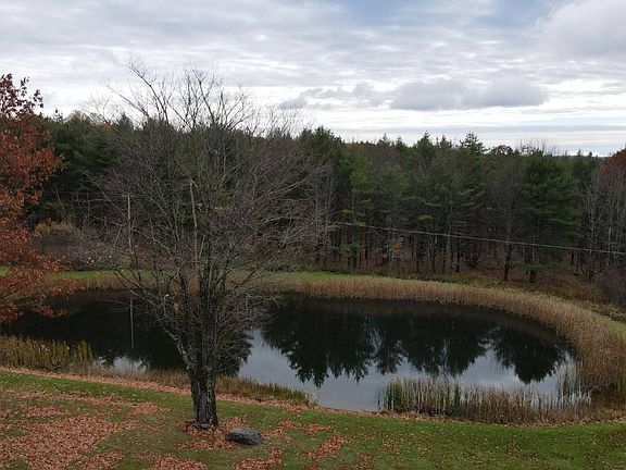 Views and peace and quiet come with these 11.59 acres.1/3 which is half open and 2/3 wooded. This 2 bedroom, 1 bath home has room to grow where you can add another bath and bedroom. This home has a nice updated tile bathroom, open floor plan with a wood stove, large windows so you can see the views. Large deck overlooks the pond and views. There are 2 garages. One for a car and one for toys. There is 500 acres of state land about 1 mile away from the home.