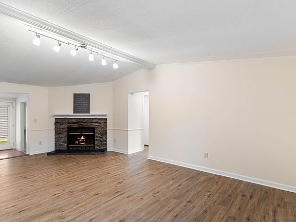 Welcome to this beautifully updated 3-bedroom, 2-bath mobile home on a permanent foundation, perfectly situated on over half an acre with gorgeous landscaping. Step inside to find fresh paint, luxury vinyl floors, and an updated kitchen with upgraded cabinets and SS appliances. Fireplace in the living room. The spacious master suite boasts a newly renovated bath, adding a touch of modern comfort. A dedicated laundry room provides convenience, while the covered front porch is ideal for relaxing outdoors. Outside, enjoy a fenced backyard, double garage with workshop space, and an air compressor already plumbed in—plus a carport for additional parking. With thoughtful updates inside and out, this home blends functionality, charm, and value.