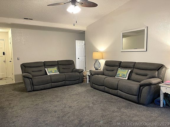 Elegant updated home in Glenpool! Newer paint inside/out, Beautiful kitchen, remodeled bathrooms, newer floors, newer air condition and heating systems (2 years), newer appliances (1 year), newer windows (1 year), newer roof (3 years), newer light fixtures, wood burning fireplace, window treatments stay, covered patio, large private backyard(8' fence tall in 2 sides), fruit trees. Refrigerator, washer and dryer included "as is" but in good working order. A must see!