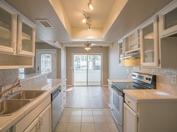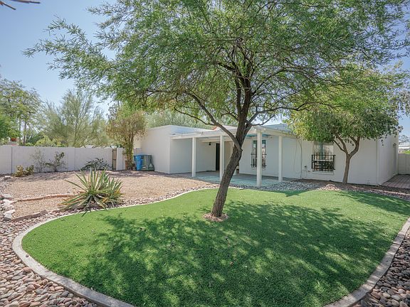 Community pool access, a nearby park, and an open floor plan, oh my! Come see this single-level Phoenix home resting on a corner lot. Inside, you'll see beamed ceilings, French doors, and a dining nook. The kitchen boasts stainless steel appliances (including a new dishwasher), a tile backsplash, and a breakfast bar. Down the hall, the Master bedroom features patio access and an ensuite bathroom with a step-in shower. New laminate flooring in the main living areas and one bedroom. Step out back and relax under the covered patio and enjoy the always green synthetic grass! Home is conveniently located near a bus stop, Safeway, and Lookout Mountain! All Opendoor homes come with a 30-day satisfaction guarantee. Terms and conditions apply. Open House: Mon-Sun, 6am-9pm