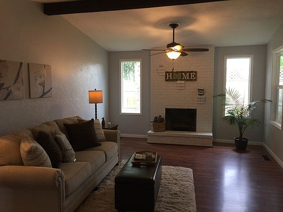 Move in ready!!! Newly remodeled ranch style home in wonderful neighborhood. Two car attached garage. Large open floor plan, great for entertaining! Brand new kitchen with island and stainless steel appliances. Large living room with wood burning fireplace. Large master suite with new laminate floors. New carpet, tile, and laminate throughout. New energy efficient vinyl windows. New interior and exterior paint. Beautifully landscaped with covered back patio. Fenced back yard. Located on a quiet cul-de-sac close to schools and shopping. Easy freeway access.