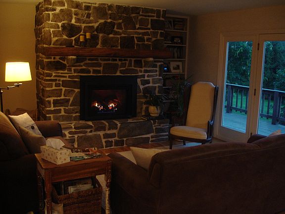 Fantastic country setting in convenient location close to town & schools. Large open floor plan with hardwood floors and stone gas fireplaces, updated bathroom and kitchen. Partially finished basement. Wraparound deck and spacious covered porch overlook 2.59 acres, patio area and detached garage. A must see!