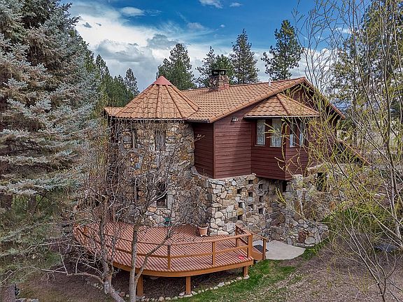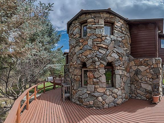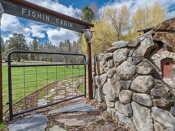 This spectacular home with elaborate masonry and artistic creativity throughout includes a 2 unit guest house. Each unit has 1 bedroom, living room, bath and fully furnished kitchen. The larger of the two units has a cowboy saloon. The main house is approx. 3,000 sq ft with 3 bedrooms each with a private bath, plus 1/2 bath, large open eat in kitchen, walk-in pantry, fireplace, office, living room , dining area and an attached 3 car garage. Also includes a large 3 level barn with an auto lift and plenty of room for toys! The property is magical, you feel it the minute you come through the gate. 5.33 acres, year round stream, spring fed pond, mature fruit trees, landscaping, sprinkler system, fenced. large 3 level barn with an auto lift and plenty of room for toys! This is for the buyer who wants the best and most beautiful. The two unit guest house is currently being rented through Airbnb.