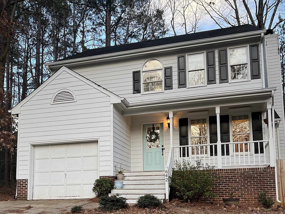 Wonderful house in a GREAT location! Super updated 2 story that backs up to Joyner Park. NEW Kitchen (new cabinets, new backsplash, new granite, new SS appliances and new tile floors), Completely NEW master bathroom with NEW stand alone tub, NEW shower, NEW tile floor. Updated downstairs bathroom with new tile and new tile in secondary bath upstairs! HVAC new in November 2019. Entire house is laminate floors or tile (NO CARPET)! Secondary bath up opens to bedroom and hall. Fantastic cul-de-sac lot within walking distance to pool & Joyner Park. Great front porch and huge back deck. Wonderful fenced yard! You will love this one!