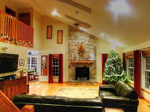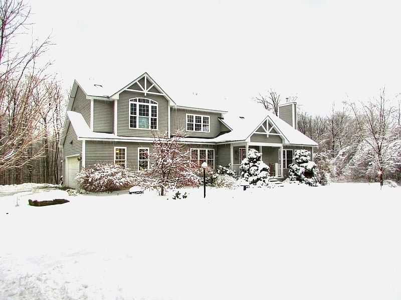 Looking for an upgraded contemporary home with a set-back private lot? Here it is! Large front and back landscaped 1.36 acres backing up to woods with walking trails and abundant wild life. Come home and immediately enjoy your heated attached garage with direct access to basement and mudroom. This home additionally features beautiful hardwood floors, spacious living room with fieldstone fireplace (gas insert), skylights, vaulted ceiling opening to hallway above, kitchen with granite counters, central vac, central air, utility sink in mudroom, whirlpool tub, and many more luxuries you look for in life! This home is filled with lots of natural light and comforts that will bring many cherished memories.