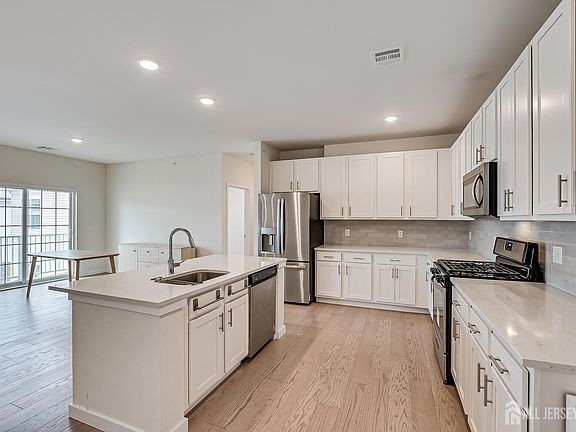 Must See! This modern, TOP-FLOOR (4th floor) elevator apartment with high ceilings offers 2 bedrooms, 2.5 bathrooms, a bonus den, and a one-car garage. Enjoy the peace and quiet that benefits from TOP-FLOOR living. The popular open floor plan features a spacious living and dining room with abundant windows that fill the space with natural light, while the high ceilings further enhance the expansive feel. Additionally, there's a private balcony for outdoor relaxation. What a lifestyle! Newer flooring, paint, and updated kitchen and bathrooms. The generously sized primary bedroom boasts an en-suite bathroom and two wlk-in closets, while the guest bedroom also has its own full bathroomperfect for added convenience and privacy. A versatile den that can easily function as a home office, playroom, or even an extra bedroom, conveniently located near the half bathroom, making it easily accessible from the main living and entertaining areas. The apartment also features in-house laundry with a 2022 washer and dryer. Enjoy ample living space along with community amenities such as a clubhouse with a modern gym and conference rooms. Conveniently located near major highways, 6 miles from Rutgers, RWJ and St. Peter's Hospitals, close to shopping and more. Schedule your showing appointment before it's gone!