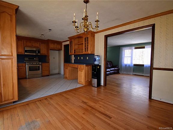 Great opportunity to own this spacious raised ranch in Tolland. This home features 3 bedrooms, 2.1 bathrooms along with 1,196 square feet of living space. Large kitchen with plenty of cabinet and counter top space, stainless steel appliances and a formal eat in area. Kitchen eat in area is also open to the living room that features a stone fireplace. Off the kitchen you will find sliders to the deck facing the rear yard and views of a brook. Hardwood flooring throughout. Basement that has a partial living area along with washer/dryer hookups. 2 car garage underneath with plenty of space. Located close to amenities and highway access. Make this home yours today!