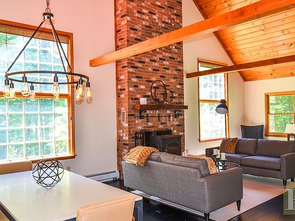 Set back on a 12-acre secluded lot, this beautifully-designed 2-bed, 1.5 bath home is filled with light and flows easily for carefree living as a weekend getaway, a full-time oasis or perfect income-producing rental. The large greatroom boasts soaring 20' pine ceilings, picture windows, a wood-burning brick fireplace and a separate dining area. The upstairs den/loft with rarely found full-height ceilings features a sitting deck, skylight, hidden storage, and can function as the master bedroom as an alternative layout. There are dark bamboo hardwood floors throughout the first floor, a completely renovated stainless and quartz eat-in kitchen, re-done bathrooms, and a like-new washer and dryer. The main entertaining deck runs the full length of the house and the walkout basement is ready to be converted to more living space. In winter, drive right into your attached garage to escape the snow. Outside, the property will capture your imagination in every season, with roaming cows and serene pond across the street, views of the mountain range and pastures, and endless private trail possibilities across your acreage. This prime Hillsdale location gives you access to all that the Hudson Valley and Berkshires has to offer as well as quaint shops and restaurants right in town. Excellent skiing and adventure park fun is five minutes away at Catamount. Just a little over two hours from New York City and Boston.