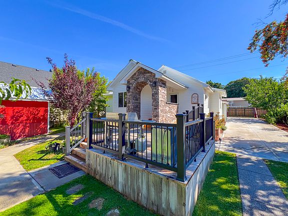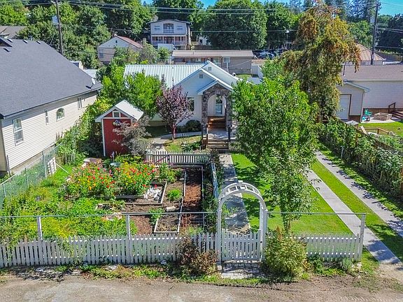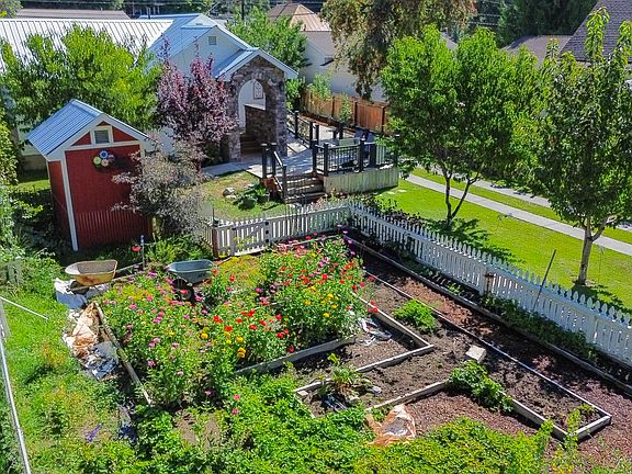 BEAUTIFUL COTTAGE HOME WITH GREAT CURB APPEAL! Custom Covered Brick Entry-Deck, Extensively, Home is completely Remodeled, Amazing Landscaping, Sets back off the Road for Privacy, Bright Open Floor Plan, Wood Flooring, A Cooks Dream Kitchen w/Dining area , Gas Fireplace, Cath Ceilings, Primary Bedroom w/lg closet, 2nd bedroom, Laundry Rm/ mud rm, One Level Living, Unfinished Basement w/lots of Storage, Large Fenced & Landscaped Yard, Fruit Trees- Plum, Apricot ,Apple, Peach & Cherries, Garden w/ Blueberries Black &, Gooseberries, Raspberry, Strawberries & Grapes, Roses & Annual Flowers, Det Garage/Shop w/ ft yard drive thru & alley access, Storage Shed, Chicken Coup, Outdoor storage rm, Yard is fully fenced and has concrete walkways, Private Back Deck set up for hot tub & More!