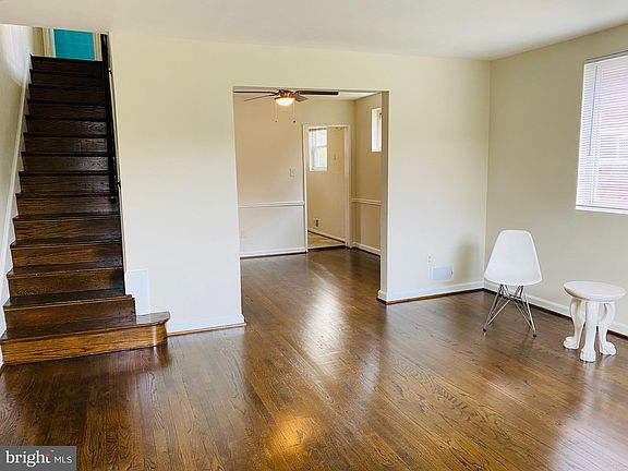 This Riggs Park home with crisp lines of midcentury architecture was built with practical features -- unpainted brick exterior, covered front porch and entrance, convenient half bath on the main level, three bedrooms with good natural light, and table space in the kitchen with an exit to the backyard. Walls are freshly painted and floors of original white oak are refinished on the main and upper levels. The upstairs bathroom in original streamlined 4x4 tile adheres to the home's architecture (both bathroom pedestal sinks are new). Downstairs, step back in time to walls of thick knotty pine (carpet is new). Move in comfortably with the opportunity to personalize updates at your own pace. The backyard is a clean slate for landscaping. Pets can run leash free to join outdoor activities within the safety of the double fenced yard. Within a 10-min walk of this home find groceries, a park, gym, pharmacies, playground, restaurants, bike share, and a new library. This block of Nicholson Street sits on a Metro bus route. The short ride to the Fort Totten Metro Station Red, Green, and Yellow Lines will take you places all over the city. You may not want a car.