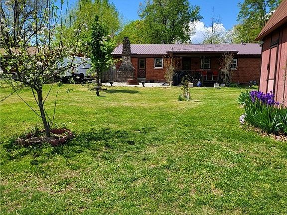 .What a great home in a Great neighborhood HILL & DALE Subdivision, Large Family room with wood stove. Hard wood floors in this 3 bed ( bed room being used as a dinning room) 1 bath home on almost 1/2 acre with detached 1 car garage/ shed plus a large 4 car- car port, garden plots and fruit trees. covered rear deck, metal roof and beautifully landscaped yard. Plenty of storage in this partially finished basement with full 2nd bath that needs TLC, not completed at present . All kitchen Appliances included . NEW HVAC JUST INSTALLED . Second drive for RV/ camper parking in rear