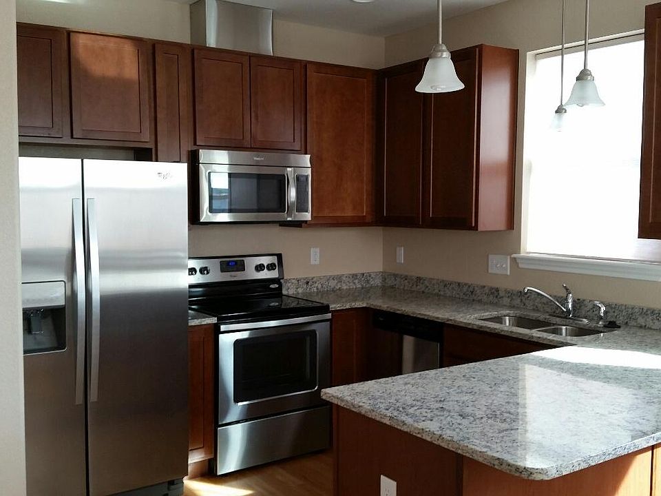COAL CREEK TOWNHOMES, Lafayette. Available September 1. This 3-story end unit townhome with attached 2 car garage with epoxy floor coating is in a very quiet and peaceful setting. Covered porch, balcony, 2 bedrooms, 2 full baths and a powder room for a total of 1328 square feet. This west facing unit features great light, wonderful views, a tiled entry and main level laundry room. Hardwood floors in the kitchen, dining and powder room. Matching stainless steel appliances including refrigerator with in-door ice/water, vented microwave, pendant lighting and granite tops. Master bedroom with walk-in closet and full bath. Second Bedroom with full bath. Washer/dryer, garage door opener and custom window coverings throughout. Central air and heat. Full access to Coal Creek Common Recreation/Park Area. Quiet, landscaped and well maintained community. Less than 1 mile to major shopping, restaurants and Old Town Lafayette. Minutes from 287, HWY 52 (Northwest Parkway) and Baseline Road. Enjoy miles of trails along the Coal Creek Trail only three blocks from your front door. Built Green! Rinnai tankless hot water & high efficiency furnace. 12 month lease term. References, background check and application for each resident required. No animals. No smoking. First month's rent and deposit required at signing of lease. HOA fees paid by owner