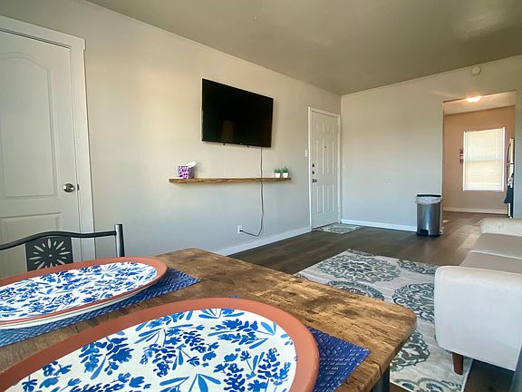 We want you to feel like you're at home on your time off. So we made sure to put the most comfortable beds and a cozy couch to come home and relax on after a long day. Tower fans provided in every bedroom, plus white noise machines for your choosing. Enjoy streaming your favorite shows on your personal high speed internet. We also provide a coffee maker for your late nights and early mornings! The kitchen is fully stocked with all cooking supplies and utensils. We offer free laundry with our in building washer and dryer. This is an upstairs apartment located inside a secured building requiring a code to enter.