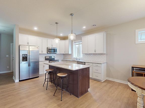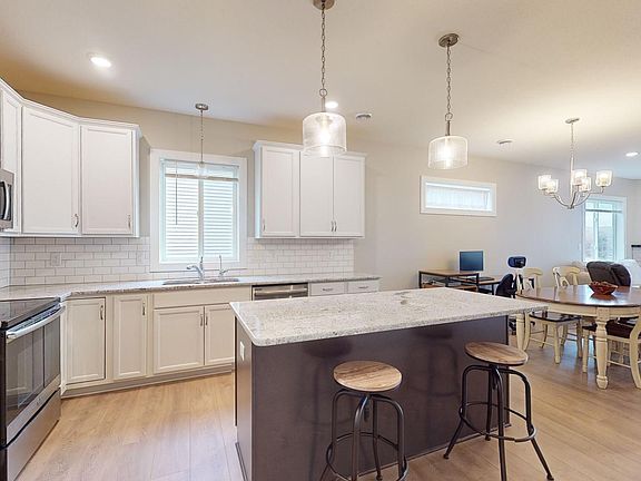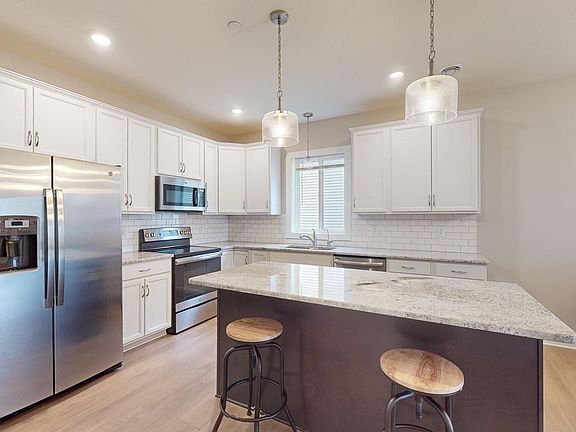 This move-in ready end unit townhome, built in 2020 has all the living space on the main floor with no stairs. As soon as you walk in you will notice the tall 9ft ceilings throughout and open concept. The kitchen features granite countertops, center island and stainless steel appliances. This space flows right into the dining room and living room which has a beautiful corner fireplace. There are two large bedrooms with the primary suite having a tiled shower, double sinks and walk -n closet. Out the backyard is a great concrete patio and attached garage to the front of the property. This is carefree living with the association taking care of your lawn care, snow removal and outside maintenance. Be sure to check this out today!