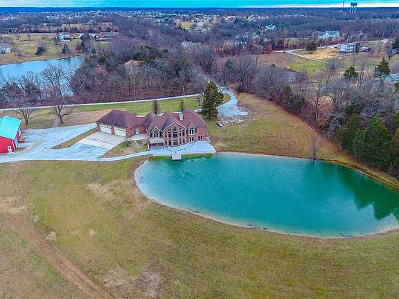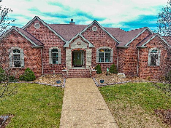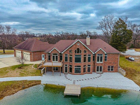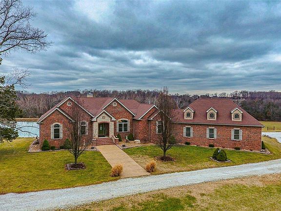 NO CITY RESTRICTIONS~NO HOA~UNINCORPORATED ST. CHARLES COUNTY~ZONED AGRICULTURAL Custom atrium ranch on 8.14 acres overlooks a deep and stocked pond, which also serves as the source of its dual commercial grade geothermal units. Custom features include 8 ft. solid interior doors, masonry fireplace, spacious gourmet kitchen w/stainless appliances, granite countertops, an expansive island, walk-in pantry, wall mount double ovens, wet bar and custom cabinets. The adjoining breakfast room has coffered ceilings with hidden lighting and a private deck, perfect for enjoying the deer and turkey. The primary bedroom suite, second and nonconforming third bedroom (office) are spacious and located on the main level; two additional en suite bedrooms with custom walk in closets are in the finished lower level. Walk-out lower level is perfect for entertaining, with masonry wood burning fireplace, wet bar ready plumbing, storage and a vintage bank vault door! Did I mention no HOA or city restrictions? Additional Rooms: Mud Room