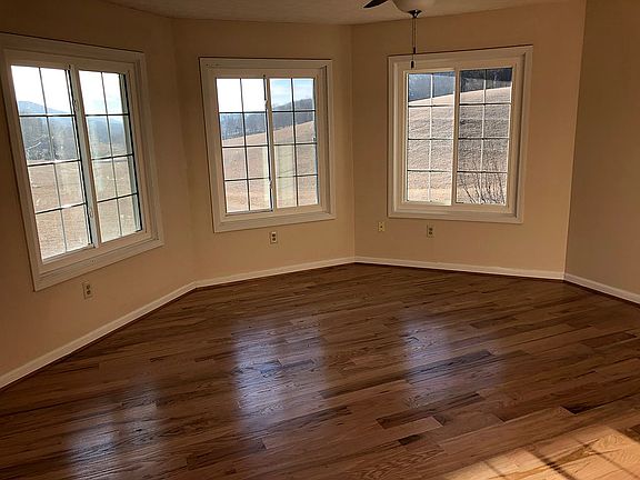 Three acres of country living with a heavenly view, located less than 10 minutes west of Blacksburg and east of the New River! Overlooking the Spruce Ridge Christmas Tree Farm and miles and miles of incredible Blue Ridge mountain views, this three bedroom, three full bath home offers spacious living space and large windows for taking in the view from every room. Oversized family room with floor-to-ceiling fireplace (stacked stone facade and gorgeous pellet stove insert with wireless thermostat added in 2019), vaulted ceiling with 2 ceiling fans, and built-ins. Other features include a large eat-in kitchen with lots of storage and counterspace, formal dining room, office/den, and laundry all on main, full unfinished basement with fireplace and upgraded electric sub-panel for nearly whole-house generator, 2 car garage, stand-up second floor and garage attic storage spaces. Back patio faces east for beautiful sunrises, and front porch with room for rocking chairs and dining area to relax and take in the views, sounds of nature and trains along the river, amazing sunsets, and a night sky so incredible that you won't want to go inside! 2 acres of fenced pasture with 2 stall horse barn, complete with tack/feed rooms and hay stall built in 2023. First floor bath vanity and floor upgrade in 2019. Laundry room floor upgrade in 2019. Kitchen/family room open floor plan renovation with all new appliances and full house interior paint update in 2019. 6-lite Therma-tru Benchmark Craftsman front door added the same year. Note: photos were taken in 2018, before renovations.