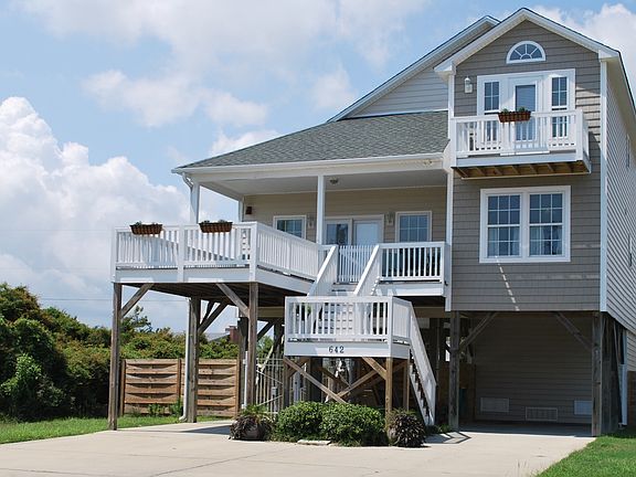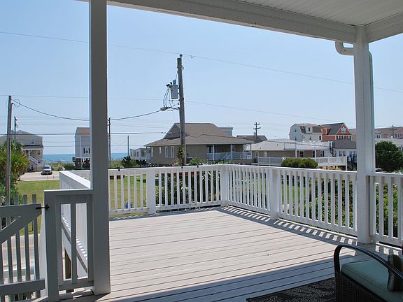 See the sunset from the front deck of this light and airy home just steps from the beach featuring tons of windows that allow for an ocean or inlet view from every room. Enjoy the the spacious living room with its vaulted ceilings and soft coastal colors. See how the open feel continues throughout the home with beautiful hardwood flooring in all rooms but the baths. New solid maple stair treads were added as well as updated lighting thru-out the home. The bathrooms have bright contemporary ceramic tile and updated fixtures including rain showerheads. To complete the updates, high end solid wood 8” molding has been added giving the home an upscale touch not seen in most raised beach homes. Create a gourmet meal in the modern kitchen with less than 5 year old high-end appliances; top of the line garbage disposal; white cast iron sink; a modern faucet and beautiful granite countertops. There is ample storage throughout the home as quality custom built-in shelves were added to the pantry/laundry and to one of the bedrooms. There is easy access to the large attic space and below the house is an attached storage room for all of your beach chairs. A new air conditioning unit was installed recently as well as a 6 foot high privacy fence with locking gates offering a chance to relax in the large landscaped yard featuring a stone fire pit and plenty of room for a pool. A private outdoor shower with hot water is just what you need after a long day at the beach. Rest easy knowing that flood insurance is only $500 for the year and utility bills are well under $200/month. Come breathe the ocean air today in your very own light and airy beach retreat.