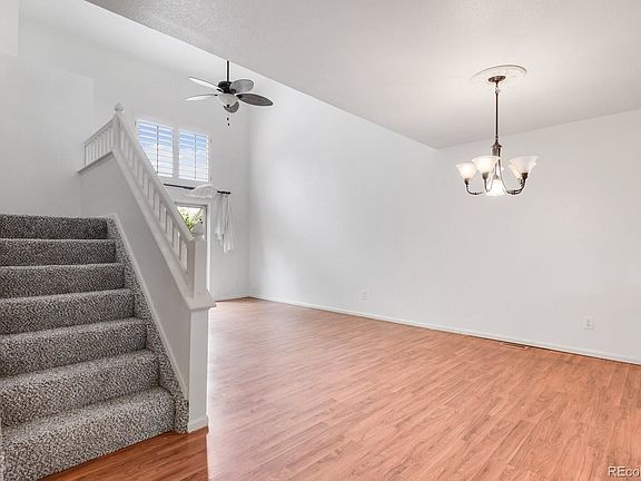 Welcome to this modern 2-story home that has only 1 shared wall and no HOA! As you walk in you will notice the open floor plan with vaulted ceilings that allow for abundant natural light. The home features a large open living room and kitchen area. There is laminate flooring, fresh paint, and plantation shutters throughout the main level. In the kitchen you will find white cabinets, stainless steel appliances, and a pantry. The home also allows for main floor living with a bedroom, full bathroom and laundry room all comfortably situated on the first floor. Upstairs you will find an additional 2 bedrooms and another full bathroom. Enjoy the mature landscaping and patio in this private, fenced backyard. Close to public transportation, restaurants and I25.