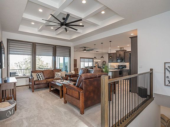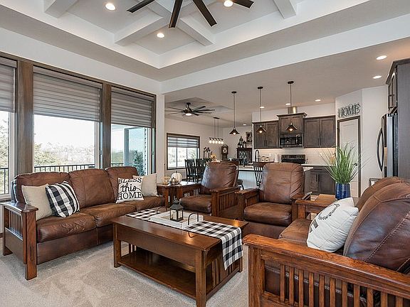 This newly designed ranch features more than 2,900 finished sq. ft with 5 bedrooms, 3 bathrooms, and 4 stall garages. Space on the main level is efficiently maximized by an open kitchen/living/dining concept and 11' coffered ceilings in the great room. The kitchen boasts a center island with breakfast bar, granite countertops with tile backsplash, birch cabinets with crown molding, black stainless-steel appliances and a deep walk-in pantry. The primary suite features a bathroom with a double sink vanity, walk-in shower, and walk-in closet. The drop zone separates the house from the garage. The laundry room is conveniently located on the main level attached to the master closet. Spacious walk-out finished basement has a rec room with wet-bar, three additional bedrooms, full bathroom, and a storage room. Oversized heated 4-stall garage has a workshop in the back. A 10x10 garage storage is built into the back of the house making it perfect for storing a lawnmower and equipment. Other features included are a 14 x 9 covered deck, 14 x 9 patio, full sod, underground sprinklers, sump pump, and garage door opener. House includes Kinetico purified drinking water and a soft water system. Radon system is included in the home. Please contact the homeowner to schedule a private showing.