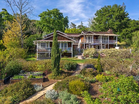 Just two miles from the Woodside Village, this magical setting begins with a wine country-style garden entrance and continues out to sweeping western hill views and amazing privacy. A whole-home transformation created a luxurious indoor-outdoor space with designer finishes and an exceptionally bright and light ambiance. The floor plan is arranged with two distinct lower-level wings for the homes 4 bedrooms, connected by a vast rear terrace with large spa, garden paths, and even a chicken coop on the lower grounds. The main living areas, catered by a stunning all-white gourmet kitchen, open to a covered deck for ultimate view enjoyment. A lower-level family room plus an office on the main level round out the accommodations. There are 3.5 baths, each beautifully appointed in a selection of Carrara marble and glass tiles. Access to acclaimed Woodside Elementary School and proximity to miles of hiking trails add the finishing touch to this exceptional home.