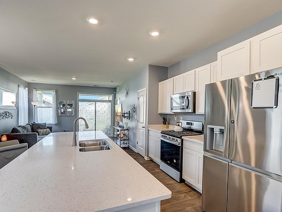 WOW! This new construction ranch is sure to impress, has a 3-car garage, with smart (control phone/wall button/key pad or remote) belt driven openers. 11 windows throughout, Ring security cameras and security system. Brand new smart appliances, the side-by-side refrigerator/freezer makes ice/water AND craft ice balls. Very sunny and private, since the surrounding neighbors on both sides do not have windows facing the home. The kitchen is bright and beautiful with plenty of cabinetry, a pantry and gorgeous quartz counters. The main living area is thoughtfully adjacent with the open floor plan. There are fresh neutral colors throughout the home, and beautiful luxury vinyl plank flooring. The bed rooms are both generously sized, including the main suite with bathroom and walk-in closet. The 3rd bedroom is a den/office. In May of 2023 there will be a community pool and activity center. Wonderful nature/walking trails and lakes, fishing etc. Snow removal and lawn maintenance provided by the HOA. Tenant responsible for all utilities, extra deposit/rent required for pets.