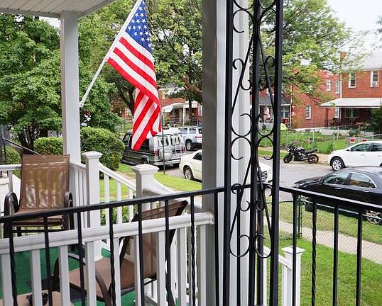Lots of charm abounds in this lovely porch front townhome with off-street parking. Spacious rooms with gleaming hardwood floors. Electric Fireplace in Living Room. New Updated Kitchen with Appliances. First Floor Powder Room. Large Fenced in Rear yard with Parking Pad. Home Warranty!! Quiet Location. Close to I95