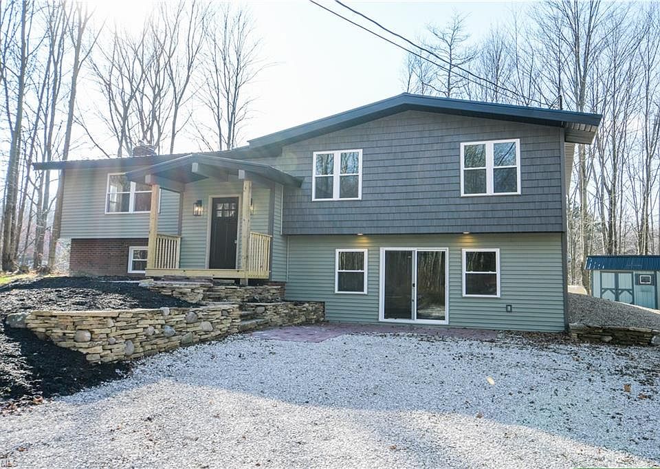 Welcome to this beautiful renovated home on over 13 Acres with trails. This home is fully finished upstairs & down with 4 Bedrooms, 3 full bathrooms, great room, recreational room, & lots of storage. Complete with new kitchen, bathrooms, flooring, roof, siding, windows, furnace, cover deck, & more. You will find this on a well maintained country back road, just minutes from I-90, local wineries, new Geauga County Thompson Library, & many local parks like Thompson Ledges, Hell's Hollow, & Hidden Valley. Kitchen has shaker cabinets with gorgeous granite countertops, new black stainless appliances, & eat-at island. Natural Hickory Hardwoods throughout the main level. Open concept great room has shiplap ceilings & new lighting. Lower level has waterproof plank flooring with underlayment throughout the large rec area, added office nook, bedroom, laundry, & full bathroom. Each level has chimney access if a wood stove is desired. Huge nearly 600sf covered rear deck over looking the back yard. Property is currently equip with a 300 yard shooting range, trails, & camping area in the center with firepit, horseshoe pits, & concrete tables for your enjoyment. 2 car garage, large steel outbuilding, animal shed, & garden shed for your dream homestead.