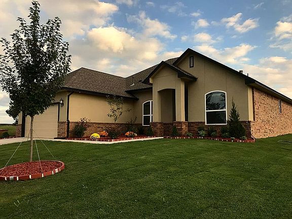 Built by Oklahoma's largest home builder. Modern layout and colors. Open split floor plan, Island Kitchen with quartz counter tops. Pond view. 4th bed can be used as an office.