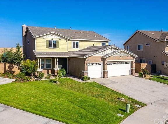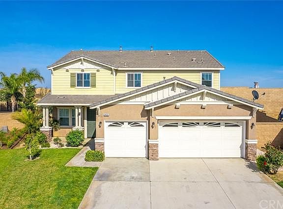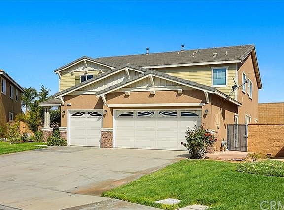 Gorgeous home located in one of highly sought Eastvale's neighborhoods. Enter through the double entry doors, very bright and airy. Open concept floor plan offering 3320 Sqft of living space, 5 bedrooms, 4 bathrooms and a large open loft area. Gourmet kitchen with built-in cabinetry and big island, opens to the family room with a fireplace. Rare two master bedrooms, one master on the main level with full bath. Second master suite with jet soaking tub and separate shower. Vinyl energy-efficient windows, wood flooring and fresh painting. Backyard is low maintenance with artificial grass, children's play/swing set and beautiful fruit trees. Convenient location for shopping, dinning/restaurant, school and parks. No HOA.