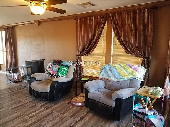 Remodeled Ranchette 1290sf site built Home on 2+ acres/Master Bath w/walk-in shower, LR has free standing pellet stove, 3rd Bdrm has secret storage/Kitchen has custom pine cabinetry w/backsplash & breakfast bar/Mt Charleston Front porch views/outbuildings/Property is fully fenced w/cross fenced area at rear of house/Property still needs some TLC, but ready for the finishing touches/Move-in ready many items have been completed/New Roof needed soon