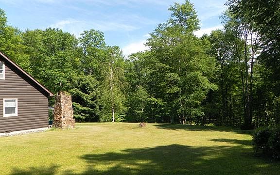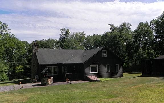 Very private setting with 3.5 acres bordering the Elk State Forest. Well maintained log home with casual floor plan; the first floor features: dining room with a picture window overlooking the rear yard, modern kitchen, living room with beautiful stone fireplace and vaulted ceiling, 2 full baths, 2 bedrooms, and office or additional bedroom. The second floor boasts a large bedroom and loft landing - perfect for working or learning remotely! Utilities include: well water, oil/wood and coal heat, and conventional septic. Detached garage with workshop.