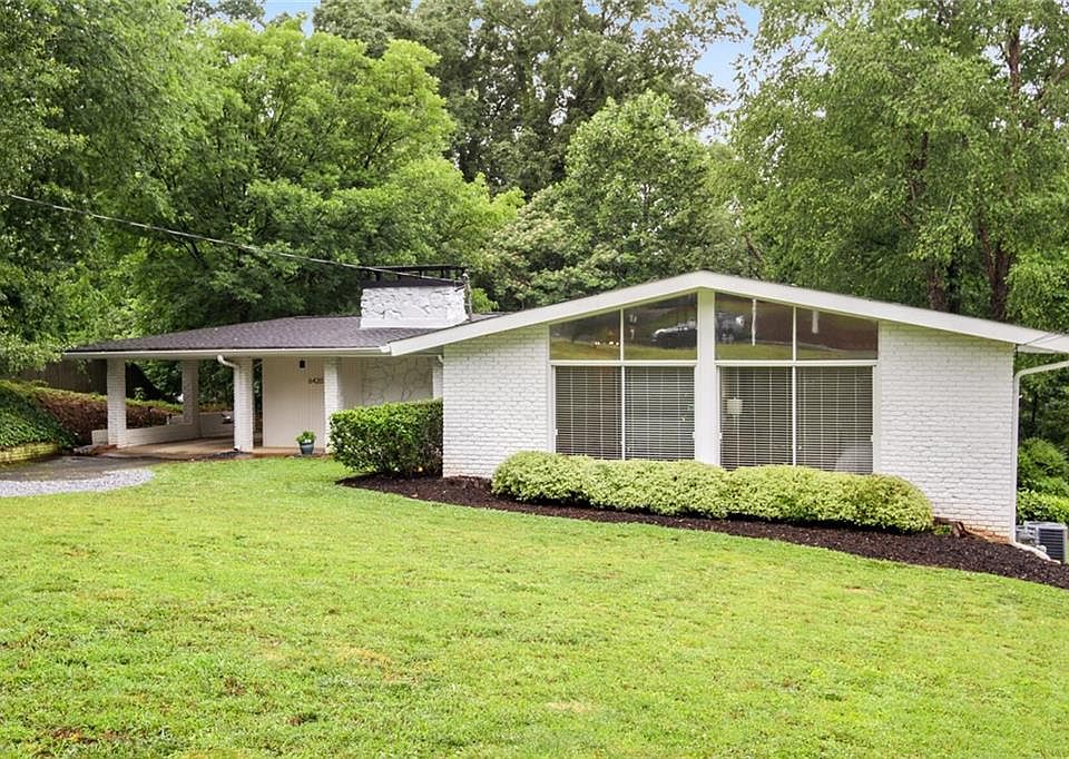 Spacious Mid-Century Modern Ranch Home in the Heart of Sandy Springs, minutes to City Springs, restaurants, & shopping areas. Step back in time & enjoy soaring ceilings, floor to ceiling windows, & large open spaces in this brick & stone beauty. An adorable courtyard lined with planters greets you as you enter the home through the main entrance. On the right wing of the home, a vaulted and airy Living Room awaits with walls of windows & tons of light. A spacious Bedroom #1 could easily serve as a second Primary Suite with its own full bathroom. The WOW factor of this home is the dramatic openness of the Kitchen, Dining Room, & Family Room spaces. Perfect for entertaining, the Kitchen offers granite countertops, a generously sized island, stainless steel appliances, designer tile backsplash, plenty of cabinetry & overlooks the Dining Room/Sitting Room area. Flanked on one side by a wall of windows, the light filled Dining Room offers lovely views. The newly carpeted Family Room features newly custom-built cabinetry & a stone, wood burning fireplace. Completing the ease of one-level living is the bedroom wing. Retreat to the large Primary Bedroom ensuite to a fully redone Carrera marble bathroom. Borrowing space from a former bedroom, the Primary Suite has a dream closet, nicely equipped. The space is easy to convert back to its bedroom status & could also serve as an office, work out area, or place for a nursery. A third bedroom, light-filled and decent sized, rounds out this floor, with access to an adorable full bathroom. Original hardwood floors grace the main level. The Terrace Level features a Family Room and a nicely equipped Kitchen. There is space for an oven/range appliance while the area is versatile enough to serve as a second Kitchen or use it as an art/play area. Down the hall is a 12'x13' finished storage rm, perfect for tools, bikes, kayaks- any of your typical "garage items." Your guests will enjoy their own bedroom & renovated, full bath. A large gym and office complete the Terrace. Exit the Terrace level through the newer French doors and overlook the over half acre haven of lush greenery and privacy.