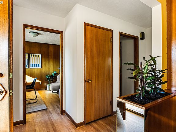 1958 Van Laeken Addition Modern - Located just north of Concordia’s Fernhill Park is a quiet, little-known, 3-block enclave of post-war midcentury homes including this special gem. Most of the homes in the neighborhood were custom-designed and built by architect Perry Weber and builder L.E. Leitritz and included roman brick facades and cocktail bars in the basements. Situated on a generous .20 acre corner lot, this home has most of its original design details intact which create an amazingly rich, cozy and warm ambience and provide a daily dose of inspiration. These include extensive mahogany built-ins and casework throughout, hefty 50’s bullnose tile in the bathrooms, walls of windows with full drapes and mahogany cabinet valances, picture moulding, hardwood floors and other period design surprises throughout. The very livable floor plan has the formal living and dining rooms in front of the home and the kitchen, 2nd dining area, den and outdoor covered patio in back. With laundry on the main, the 3 bed, 3 bath home allows for spacious single level living. With a 2nd wood burning fireplace, full bath and a separate entrance from the back (or the 2 car garage), the lower level has ADU potential as well as room for more bedrooms or other possibilities in the future. Recent improvements include new exterior paint, hot water heater and refinished hardwoods in ’24, new heat pump in '21 and polished concrete basement floors in 2020. The home is located just 3 homes away from Fernhill Park which offers an off-leash dog park, summer events, winter sledding, sports fields, tennis courts, running track, splash park, playground and much more. It’s also close to the U of O Concordia Campus, The Kennedy School, New Seasons Market, Oakshire Brew Pub, NEPO 42 - NE 30th, 42nd & Alberta Street Districts, Whitaker Ponds and more. And Concordia residents have the added bonus of soaking in The Kennedy School pool for free! [Home Energy Score = 2. HES Report at https://rpt.greenbuildingregistry.com/hes/OR10184136]