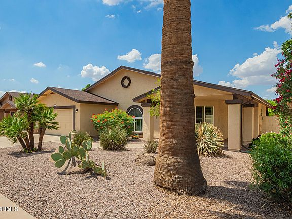 This 3-bedroom gem awaits you! Featuring a charming curb appeal & a 2-car garage with attached cabinetry. The interior boasts vaulted ceilings, tile flooring, plantation shutters, a cozy fireplace to keep you and your loved ones warm, and soft paint. The pristine kitchen boasts wood cabinets, ample counter space, and stainless steel appliances. The main bedroom is a true retreat, offering carpet for added comfort, a walk-in closet & an ensuite with double sinks. The backyard showcases cozy covered patios perfect for unwinding after a long day with your favorite drink and a lovely landscape. Fantastic location near everyday necessities! No HOA! What are you waiting for? Make it yours! AC new 2018 14 SEER (Serviced 2024), Roof new in 2011, Dual pane windows new in 2010, White plantation Shutters, 2 Solar tube/skylights, garage cabinets, New Paint inside and out 4/2025, new Carpet 5/2025, pull down attic ladder garage storage, Dryer 2021, water heater 2014, Patio's new cemet coating 5/2025. Refrigeratotr conveys as-is (water/icemaker do not work), SS Appliances, 4 ceiling fans, 2 patios, 2 stainglass windows and wood burning fireplace in Family room.