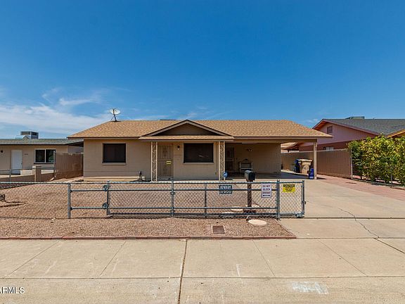 Wonderful 3 bedroom / 2bath block constructed home located in central Glendale. No HOA!! Many updates including- 18'' tile flooring, kitchen and bathroom cabinets with granite counter tops, paneled interior doors, AC replaced 2022, water heater replaced 2023. Neutral colors throughout. Primary bedroom with adjoining bathroom and walk-in closet. Inside laundry room has built in shelving for additional storage. Covered patio overlooks spacious backyard enclosed by block wall. Security doors and sunscreens. North/South exposure. This home is a true gem!