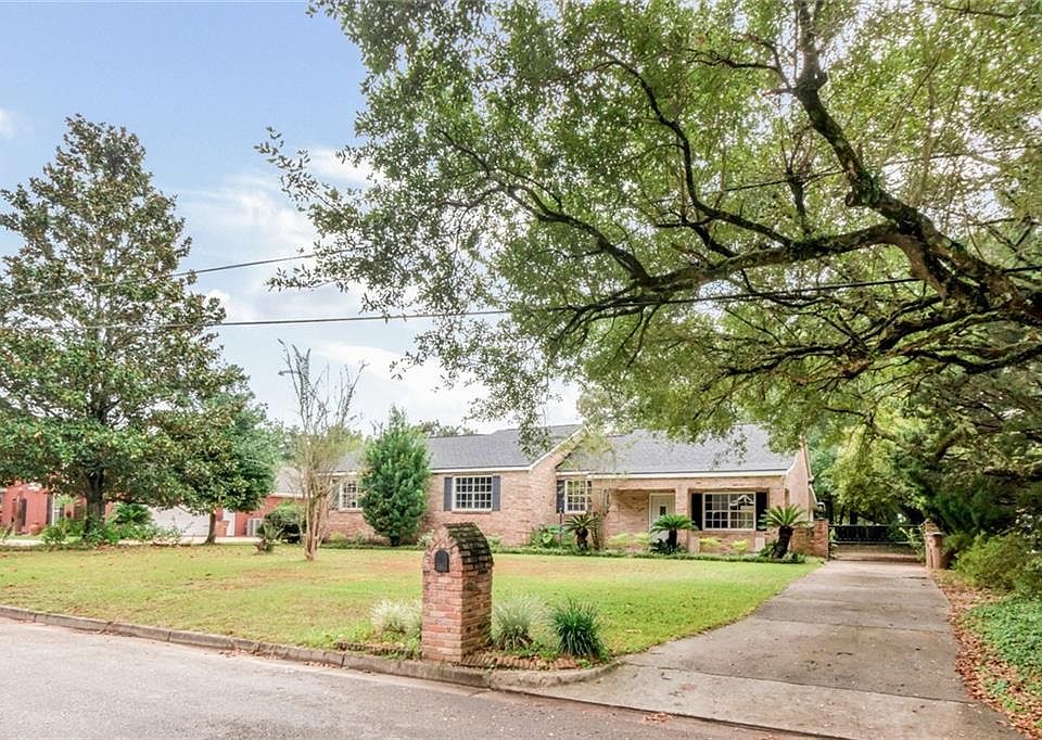 Are you in search of a completely renovated all-brick, English cottage-style home that is nestled on a sprawling lot in the heart of West Mobile? Look no further! This charming property boasts modern upgrades while retaining its inviting character, situated on a tranquil, tree-lined cul-de-sac. This beautiful 4-bedroom, 3-bathroom home is set on over a half-acre lot. Many modern upgrades but still contains all the feel-good charm with its antique brick and style. Upgrades include a new roof (2023) | AC system 2024|tankless water heater 2024| all new baths 2024 | new flooring 2024|updated kitchen & freshly painted throughout. Once inside your greeted to a spacious great room featuring a dining area w/ split brick flooring, and a cozy gas fireplace w/ custom built-in cabinetry. The open-concept kitchen is designed for entertaining, showcasing rich cabinetry paired with elegant granite countertops. There are 4 bedrooms w/ 2 bedrooms having their own private en-suite baths, making them wonderful for guests or in-laws. Outdoors you'll find the fenced backyard is complete with a covered rear porch, several storage sheds, and a garage/workshop. The side driveway is accentuated by wrought iron gates and faux gas lanterns, adding a touch of old-world elegance. This meticulously maintained home is surrounded by beautifully landscaped grounds with established plantings and charming great curb appeal! Conveniently located near Hillcrest & Cottage Hill w/ close proximity to local schools, parks, entertainment and shopping. Buyer responsible for verifying all measurements and relevant details.