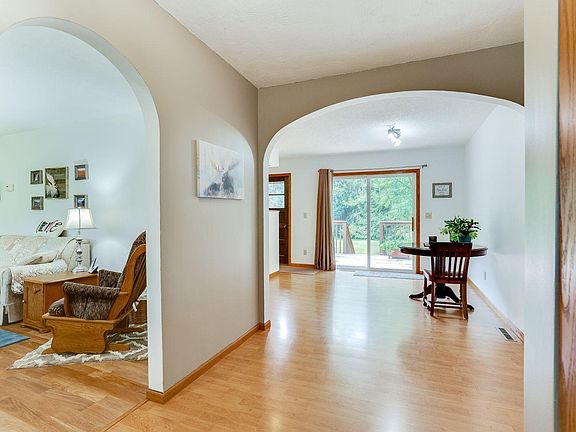 Welcome home to this meticulously maintained home that sits on 10 acres offering breathtaking views and ample space. Home features three main level bedrooms, including a primary suite. The walkout basement, complete with a kitchenette, leads to a large concrete patio, perfect for outdoor gatherings. With an additional 2-car detached garage, there's plenty of room for vehicles and storage. Embrace comfort, nature, and entertainment in this charming property. Schedule a showing today!
